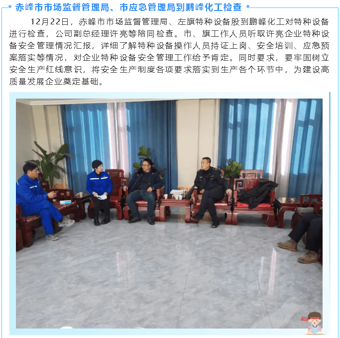 赤峰市市場監(jiān)督管理局、市應(yīng)急管理局到鵬峰化工檢查
