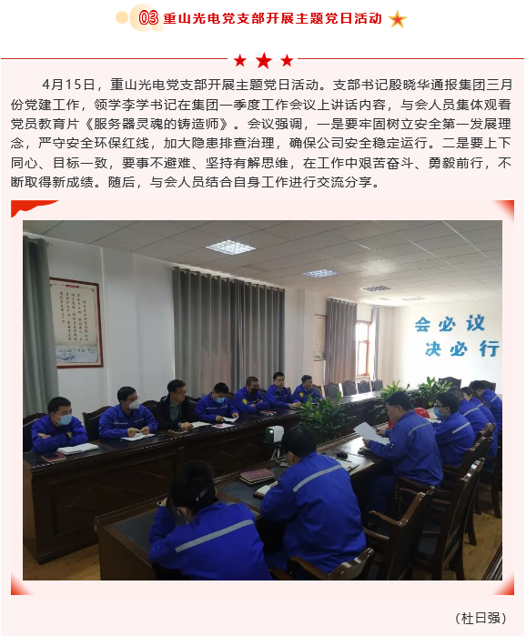 【黨建】區(qū)委組織部黨建工作示范點觀摩點評;魯中水泥黨支部、重山光電黨支部開展主題黨日活動