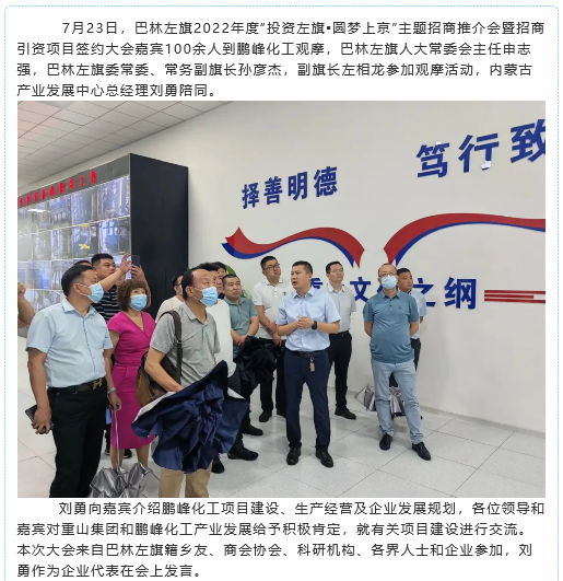 【頭條】巴林左旗 “投資左旗?圓夢上京”主題招商推介會嘉賓到鵬峰化工觀摩