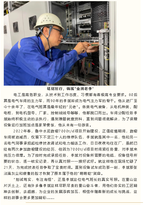 【重山人?重山事】拙誠(chéng)篤實(shí) 專(zhuān)注有恒——記魯中水泥電氣車(chē)間班長(zhǎng)李斌