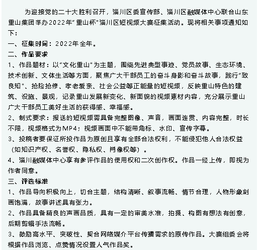 【通知】關(guān)于“重山杯”淄川區(qū)短視頻大賽的征集通知