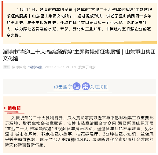 淄博市“喜迎二十大·檔案頌輝煌”主題微視頻征集展播 | 山東重山集團文化館