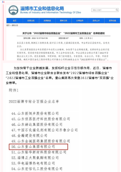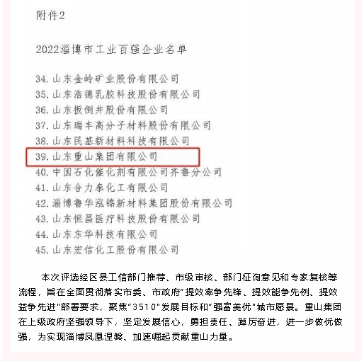 【頭條】重山集團榮登2022淄博“雙百強”企業(yè)榜單