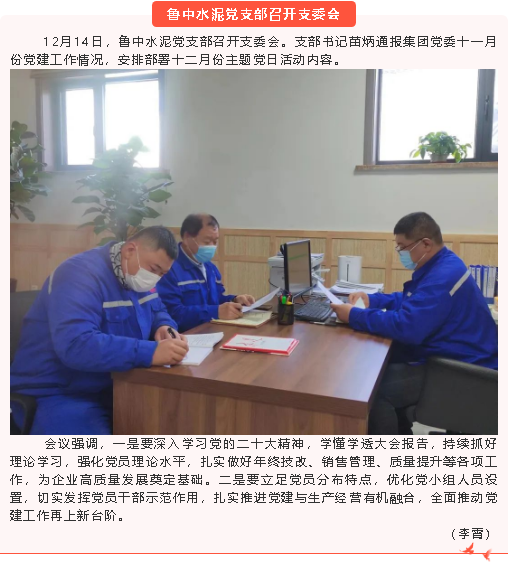 【黨建】魯中水泥黨支部、重山光電黨支部召開支委會,黃驊三陽、鵬峰化工參加黨建工作會議
