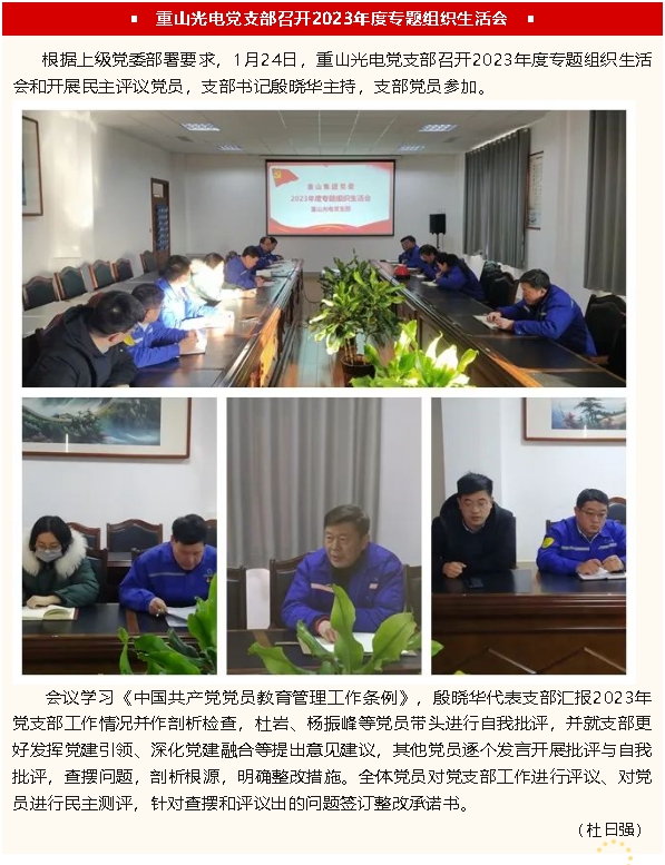 【黨建】魯中水泥黨支部、重山光電黨支部分別召開2023年度專題組織生活會