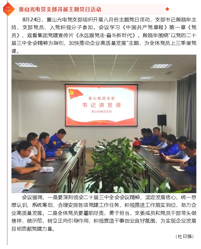 【黨建】集團(tuán)機(jī)關(guān)黨支部、重山光電黨支部開(kāi)展主題黨日活動(dòng)