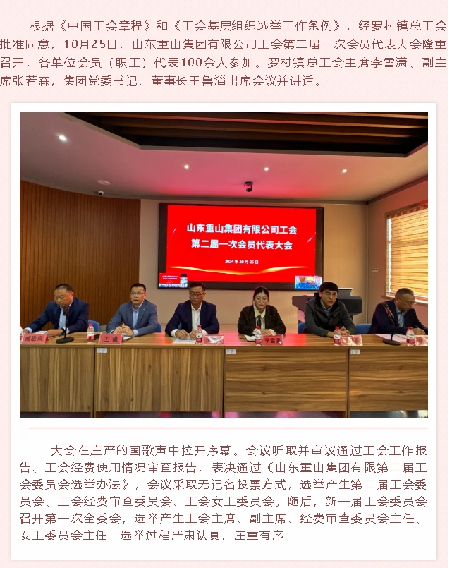 【頭條】工會換屆譜新篇,凝心聚力再起航——山東重山集團(tuán)有限公司工會換屆圓滿完成