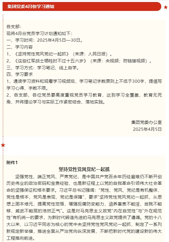 【通知】集團黨委4月份學習通知