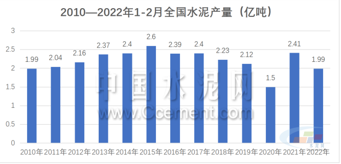 3月15日,國(guó)家統(tǒng)計(jì)局消息,1—2月全國(guó)水泥產(chǎn)量19933萬(wàn)噸,同比減少17.8%??偖a(chǎn)量跌回12年前,僅高于疫情影響嚴(yán)重的2020年,與2010年基本持平。