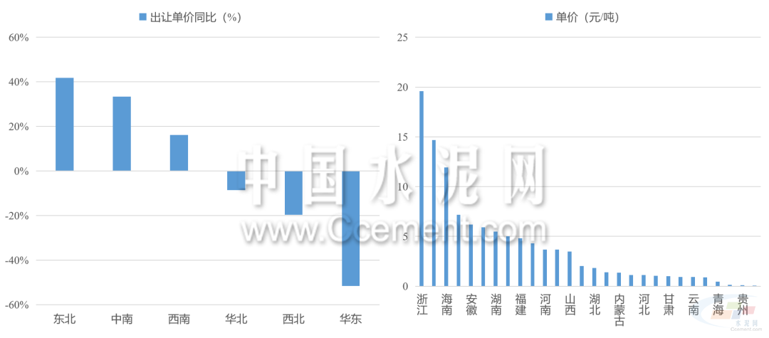 礦權(quán)單價(jià)整體下降。全國(guó)砂石礦權(quán)平均成交價(jià)格約4元/噸,同比下滑約20%,其中華東礦權(quán)交易單價(jià)下滑最為明顯。各省出讓的砂石礦單價(jià)差距有所縮小。浙江及遼寧是礦權(quán)單價(jià)最高和最低的省份。具體而言,浙江的交易單價(jià)由上半年的30元/噸以上降至20元/噸以下,進(jìn)一步拉低了華東地區(qū)整體的礦權(quán)交易單價(jià)。