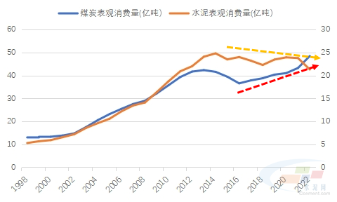 圖2:煤炭行業(yè)與水泥行業(yè)表觀消費量走勢