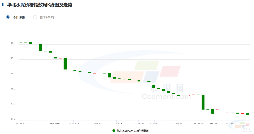 后市預(yù)測(cè):氣溫繼續(xù)下降,多地需求基本終結(jié),市場(chǎng)供需雙弱,預(yù)計(jì)本周水泥價(jià)格將偏弱運(yùn)行。