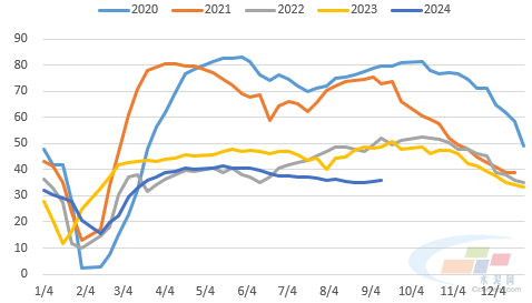 今年以來,受地產(chǎn)持續(xù)探底和基建資金不足等影響,水泥需求低迷態(tài)勢基本貫穿前三季度。中國水泥網(wǎng)水泥大數(shù)據(jù)顯示,截至當前,水泥發(fā)運率在36%左右,需求恢復不足四成,遠遜于同期。一方面,美聯(lián)儲降息,人民幣匯率升值,有利于減輕部分發(fā)行較多美元債的地產(chǎn)企業(yè)債務壓力,修復資產(chǎn)負債表;另一方面,貨幣政策空間打開后,市場利率下降,流動性增加,緩解部分基建項目資金壓力,短期需求有望轉(zhuǎn)暖。不同的是,前三輪降息周期中我國水泥需求處于上升期和高位平臺期,目前處于下行通道,長期來看需求下滑不可逆轉(zhuǎn)。