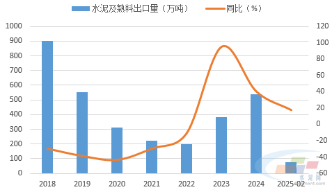 2023年開始,中國國內(nèi)水泥需求下滑壓力繼續(xù)增大,水泥及熟料出口量結(jié)束持續(xù)下降趨勢,出現(xiàn)增長,2024年增長勢頭延續(xù)。2025年1-2月,中國水泥熟料出口量實現(xiàn)開門紅,同比增長17.46%。目前中國水泥價格成為全球洼地,具有一定競爭力。筆者預(yù)計,中美關(guān)稅戰(zhàn)升級將間接使得其他國家間加強溝通與合作,促使中資水泥企業(yè)加大出口替代力度,從而促進中國水泥產(chǎn)品出口量繼續(xù)增長。