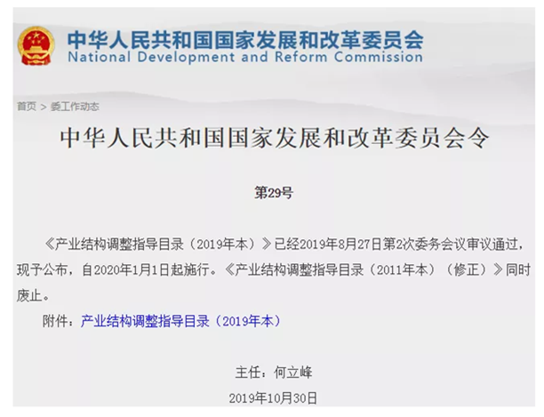 據(jù)中國(guó)水泥網(wǎng)從國(guó)家發(fā)改委獲悉,《產(chǎn)業(yè)結(jié)構(gòu)調(diào)整指導(dǎo)目錄(2019年本)》(以下簡(jiǎn)稱:《目錄(2019年本)》)已經(jīng)2019年8月27日第2次委務(wù)會(huì)議審議通過,現(xiàn)予公布,自2020年1月1日起施行?!懂a(chǎn)業(yè)結(jié)構(gòu)調(diào)整指導(dǎo)目錄(2011年本)(修正)》同時(shí)廢止。