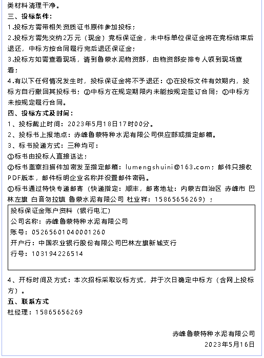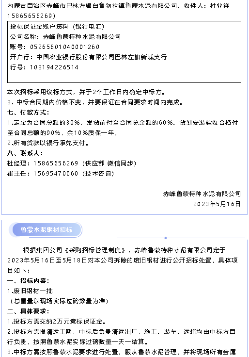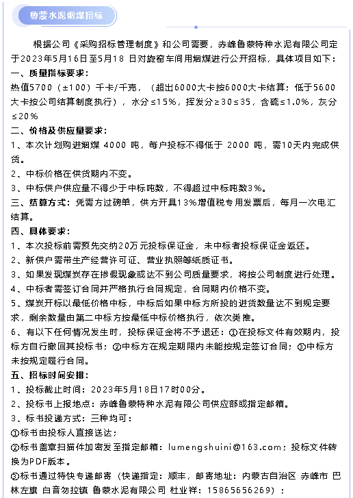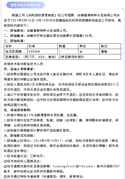 【招標(biāo)公告】魯蒙水泥變頻器、廢舊鋼材、煙煤招標(biāo)