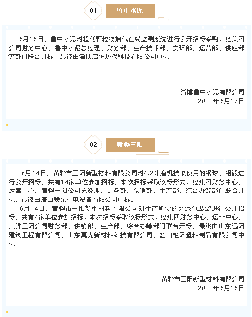 【中標(biāo)公告】魯中水泥、黃驊三陽、鵬峰化工
