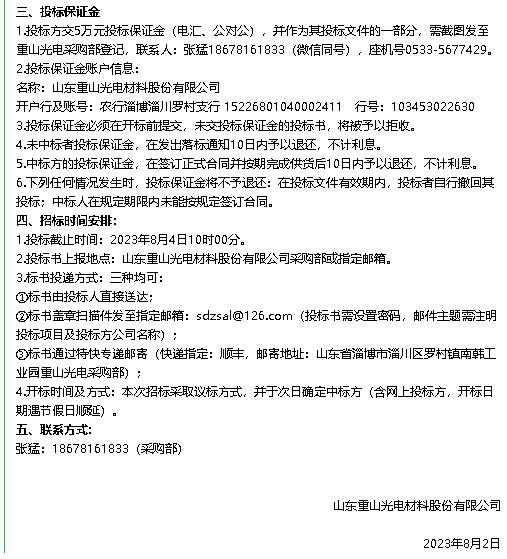 【招標公告】魯中水泥、重山光電