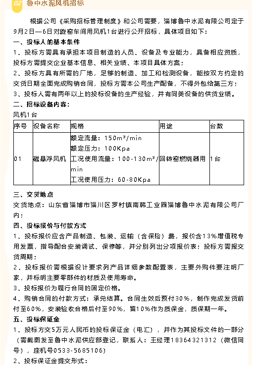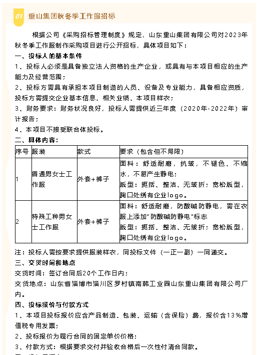 【招標(biāo)公告】重山集團秋冬季工作服、魯中水泥風(fēng)機招標(biāo)