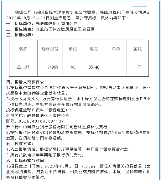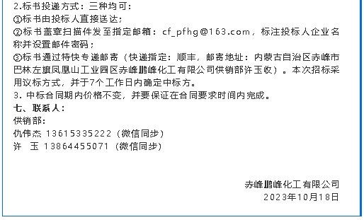 【招標公告】鵬峰化工