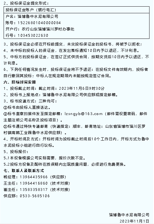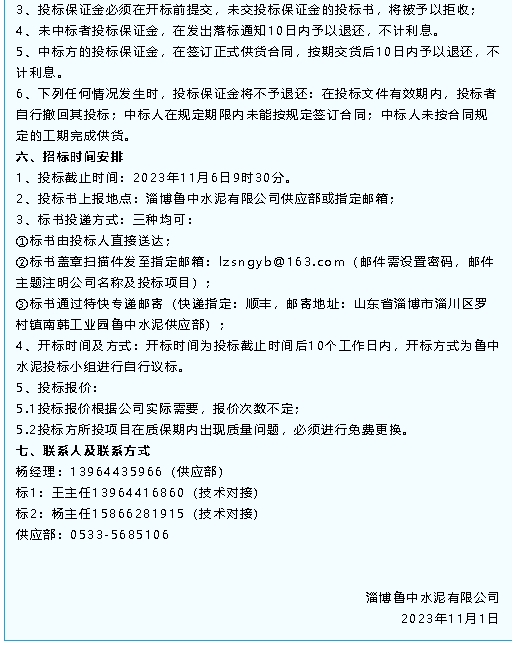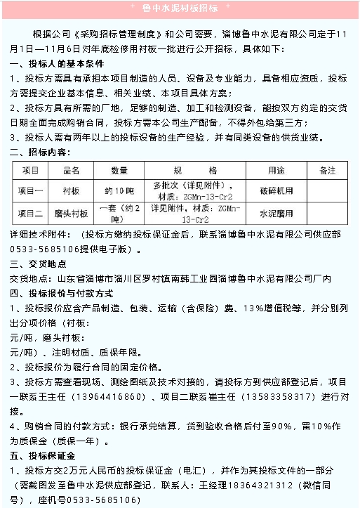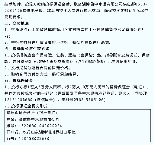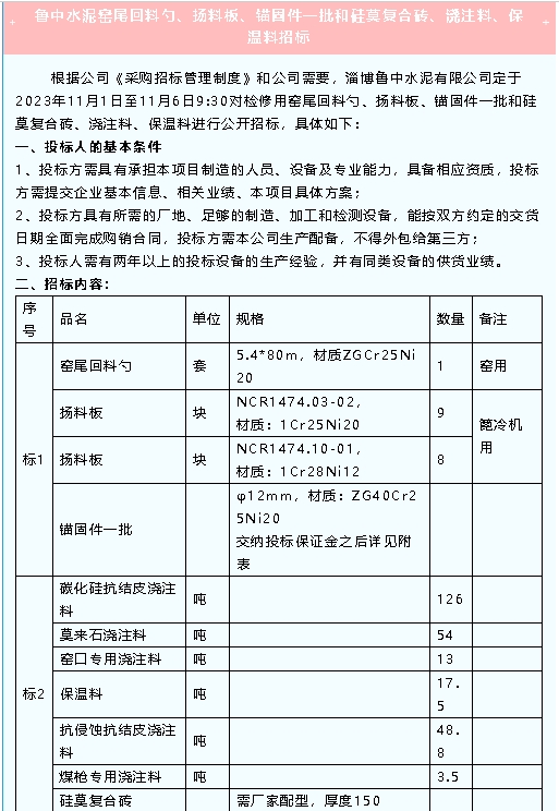【招標公告】魯中水泥