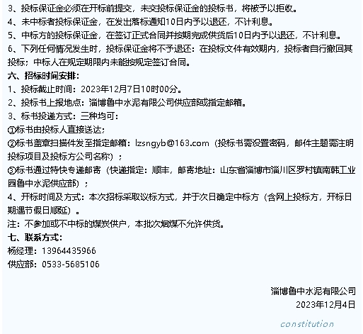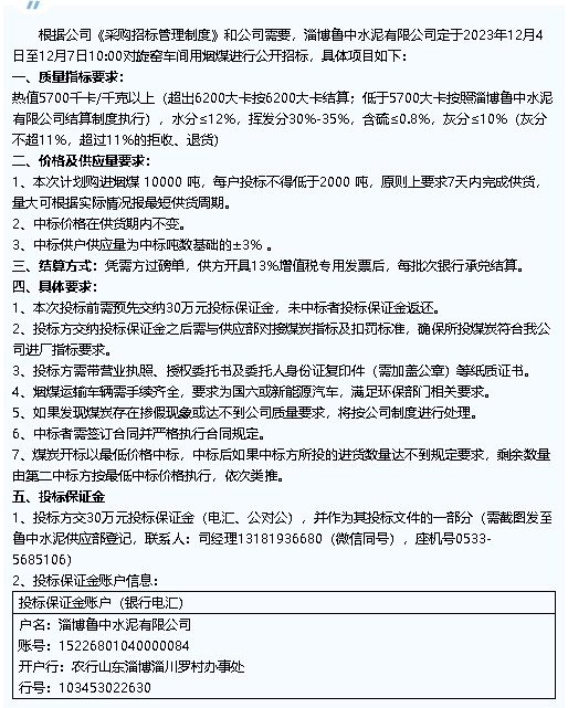 【招標公告】魯中水泥