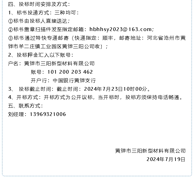 【招標(biāo)公告】黃驊三陽(yáng)