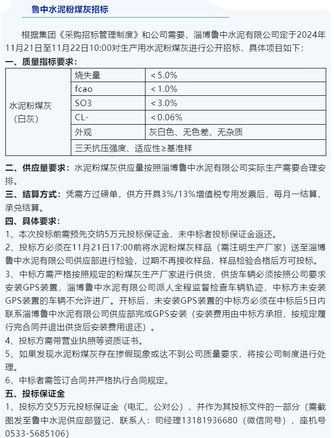 【招標(biāo)公告】螢澤礦業(yè)、魯中水泥