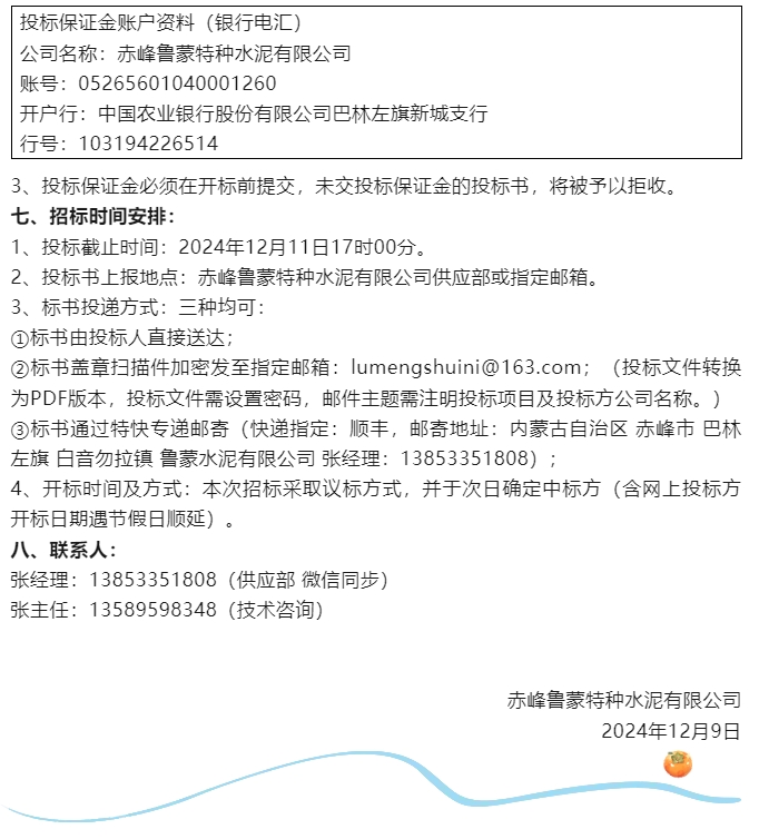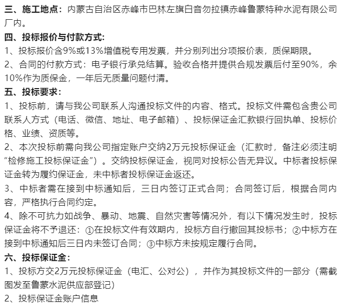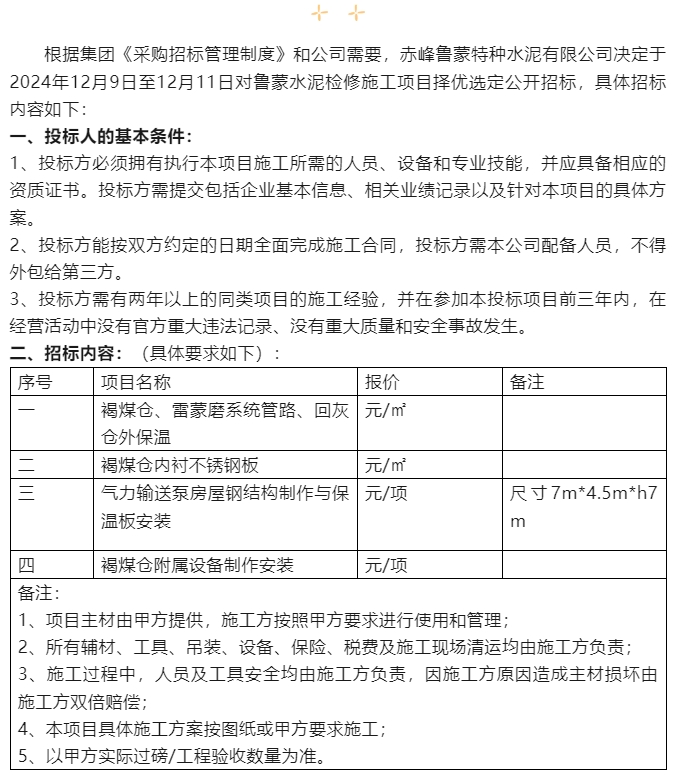 【招標(biāo)公告】魯蒙水泥