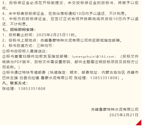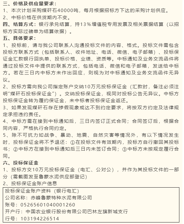【招標(biāo)公告】魯中水泥、魯蒙水泥