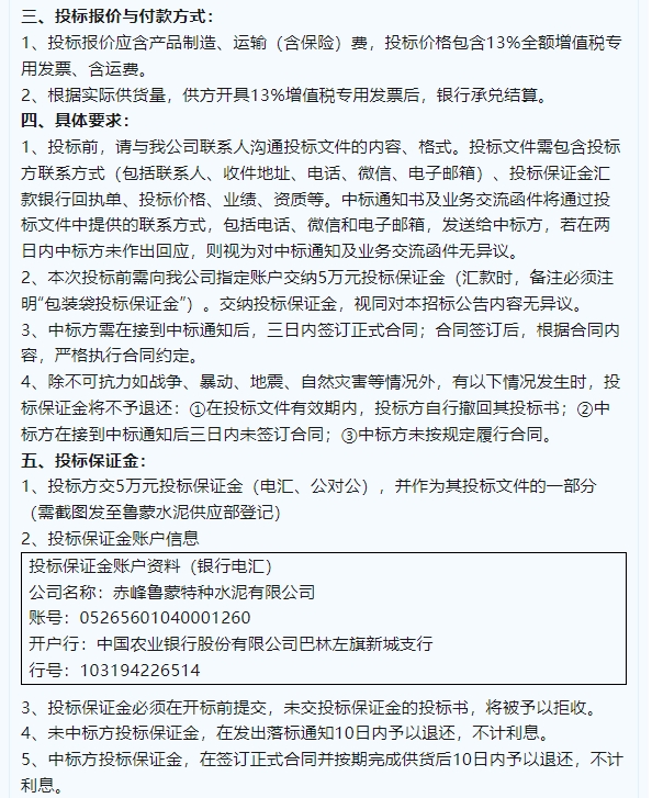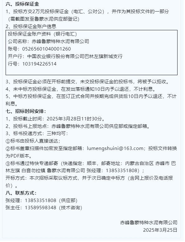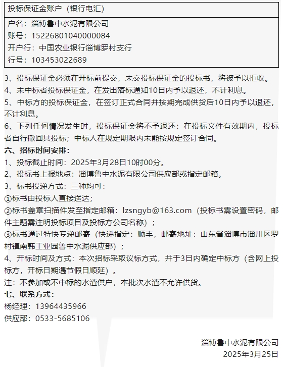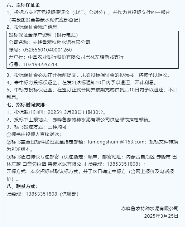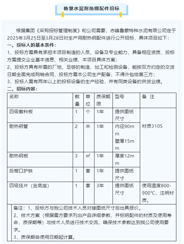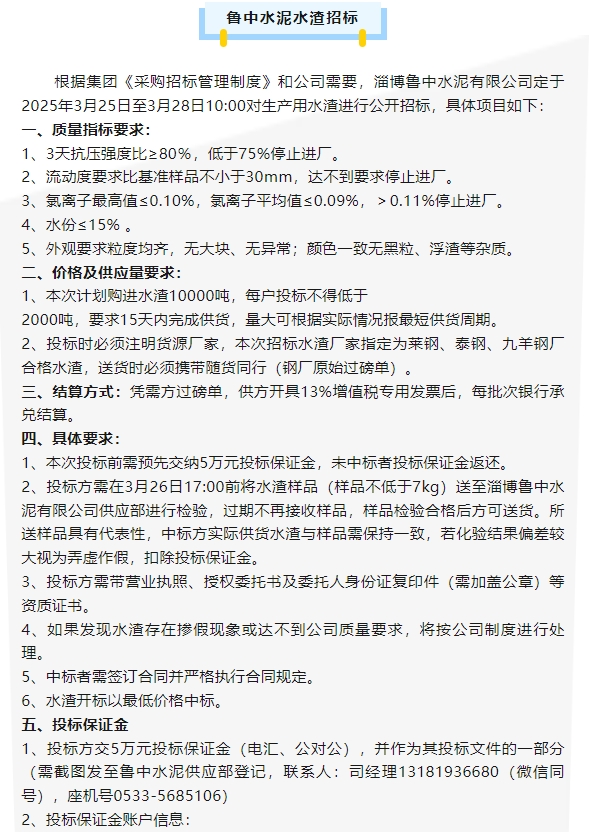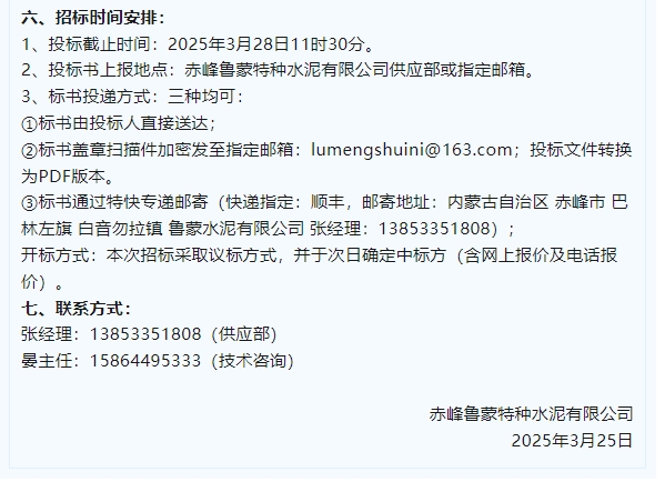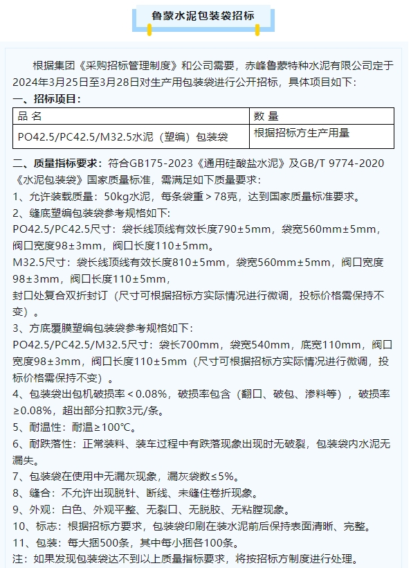 【招標公告】魯中水泥、魯蒙水泥