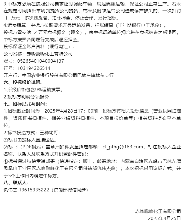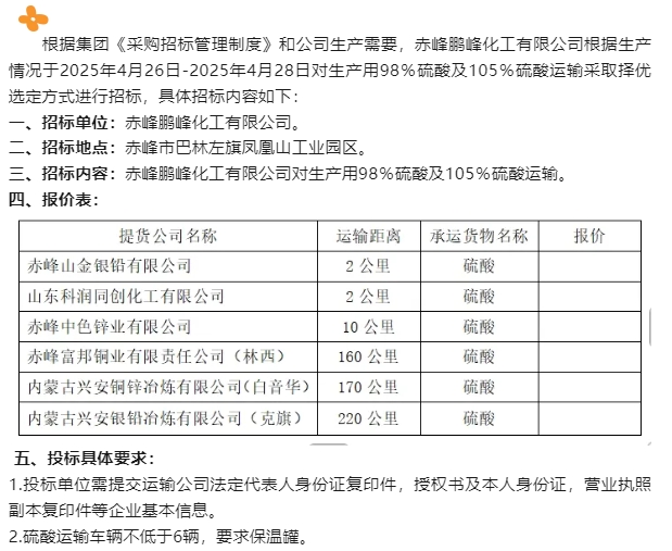 【招標公告】鵬峰化工