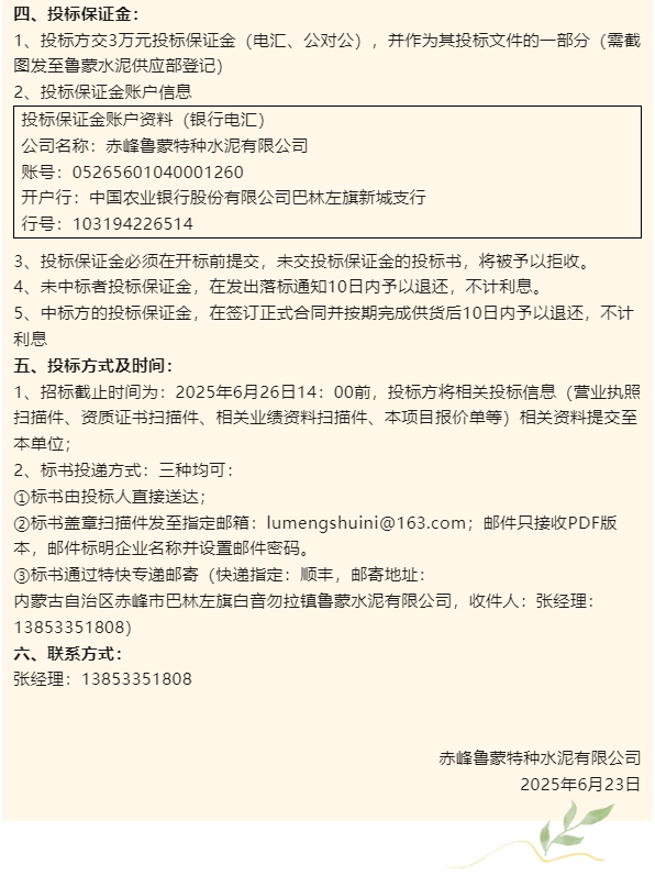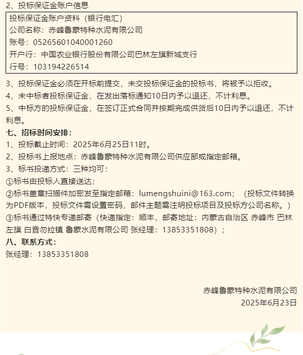 【招標公告】魯蒙水泥