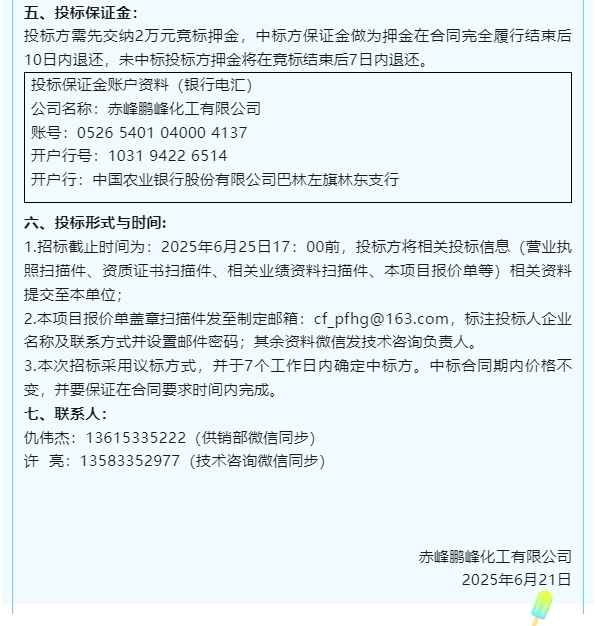 【招標公告】鵬峰化工