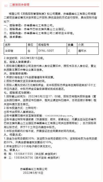 【招標公告】 鵬峰化工