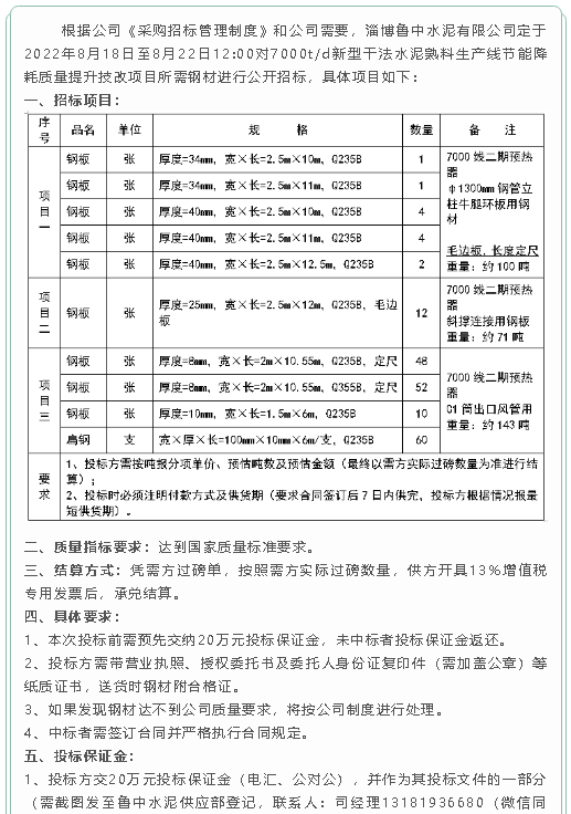 【招標(biāo)公告】魯中水泥