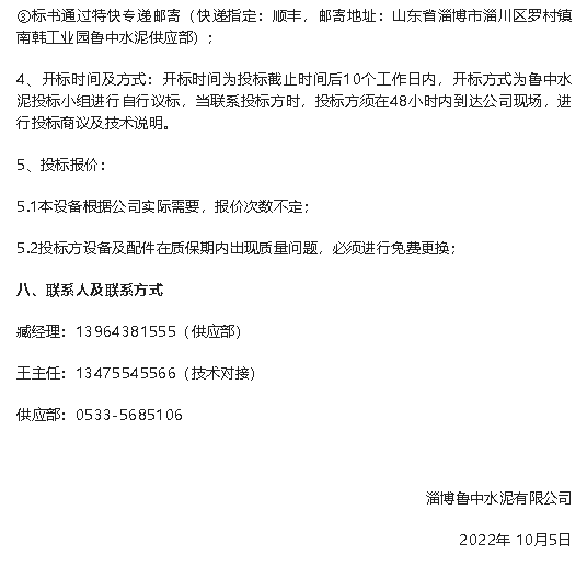 上一篇:【招標公告】魯蒙水泥環(huán)形皮帶秤、轉子秤招標,魯中水泥電纜線、旋窯安裝檢修項目招標