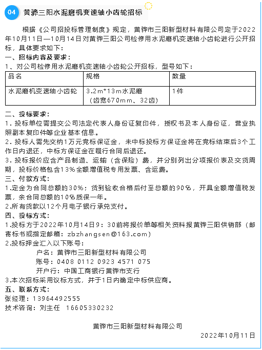 【招標(biāo)公告】重山集團(tuán)、魯蒙水泥、黃驊三陽、重山光電