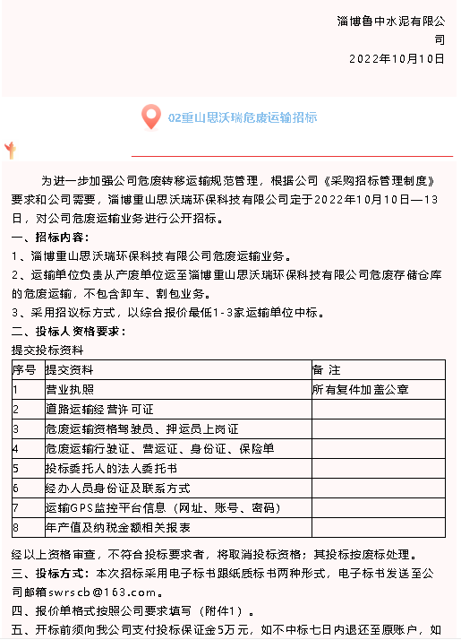 【招標(biāo)公告】魯中水泥、重山思沃瑞