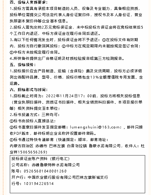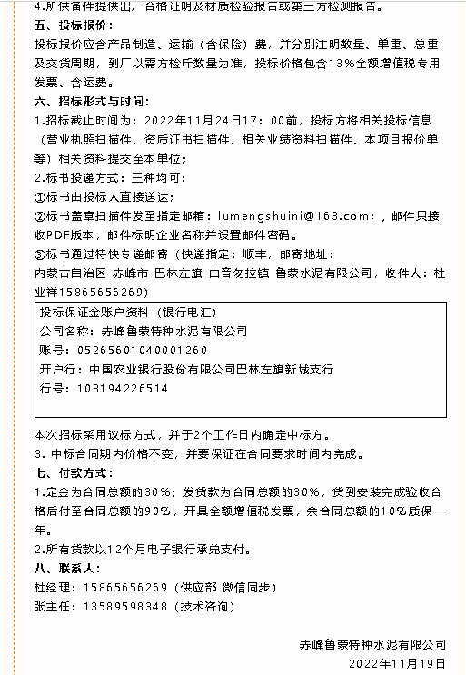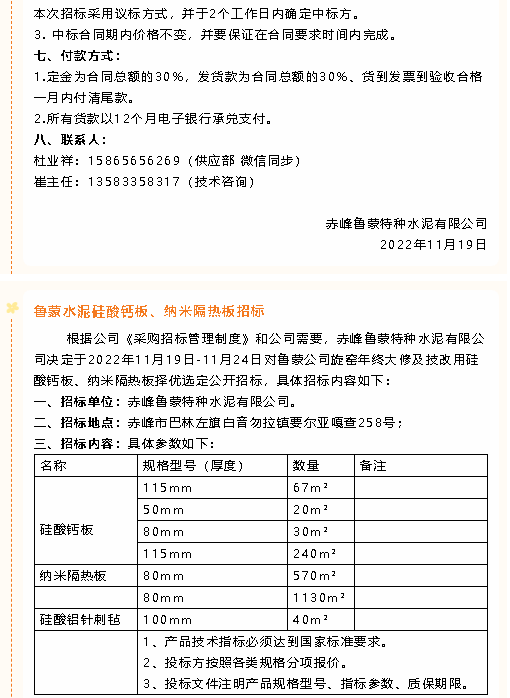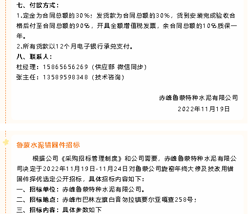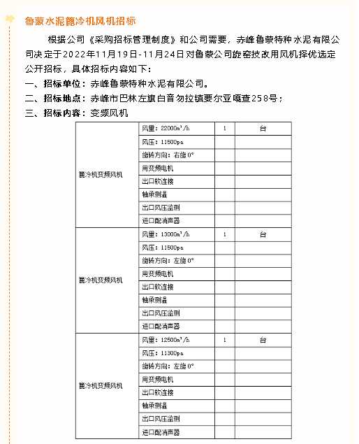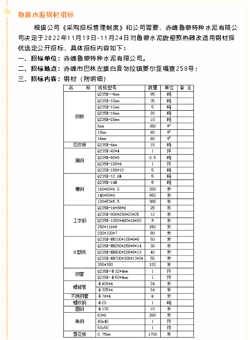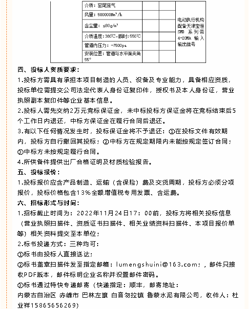 【招標(biāo)公告】魯蒙水泥風(fēng)機(jī)、鋼材、硅酸鈣板、納米隔熱板、錨固件、波紋補(bǔ)償器膨脹節(jié)、電動(dòng)閥門(mén)招標(biāo)