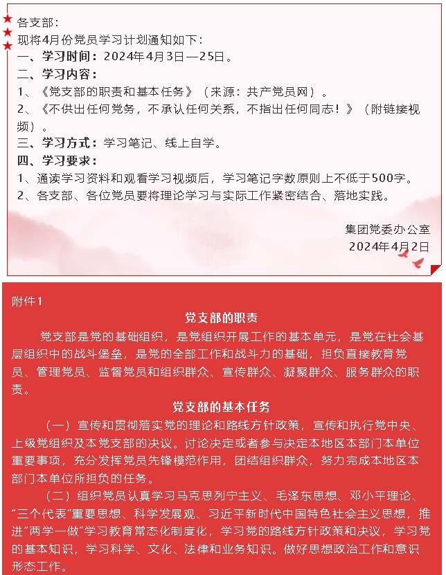 【通知】集團(tuán)黨委4月份學(xué)習(xí)通知