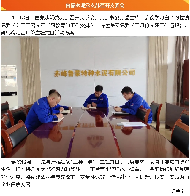 【黨建】重山光電黨支部、魯蒙水泥黨支部召開支委會(huì)