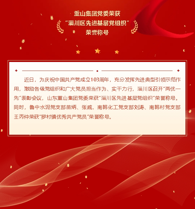 【頭條】集團(tuán)黨委榮獲“淄川區(qū)先進(jìn)基層黨組織”榮譽(yù)稱號(hào)