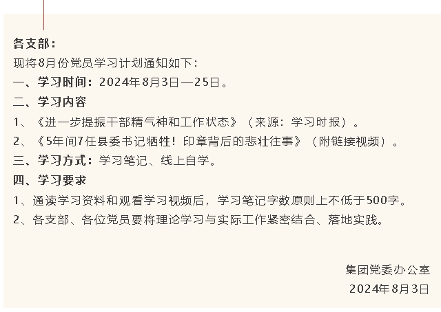 【通知】集團黨委8月份學(xué)習(xí)通知