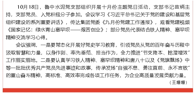 【黨建】集團(tuán)機(jī)關(guān)黨支部、魯中水泥黨支部開展十月份主題黨日活動
