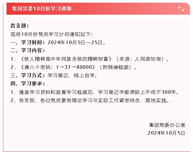 【通知】集團黨委10月份學(xué)習(xí)通知