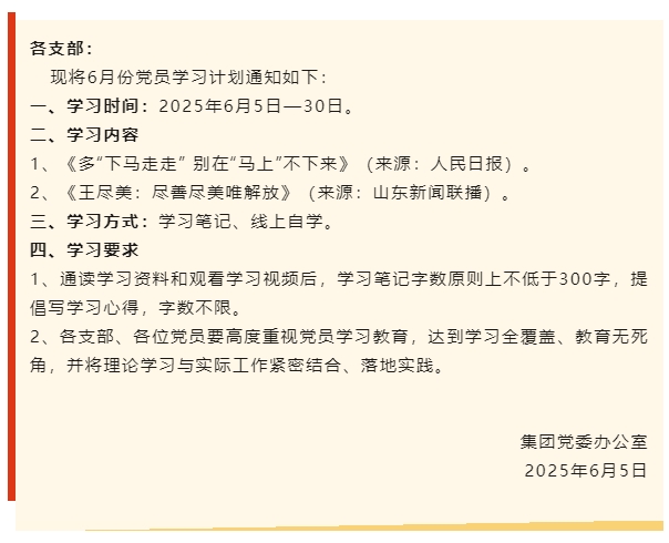 【通知】集團黨委6月份學(xué)習(xí)通知