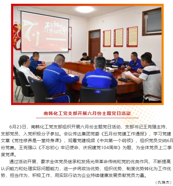 【黨建】南韓化工黨支部開展主題黨日活動、魯蒙水泥黨支部召開支委會