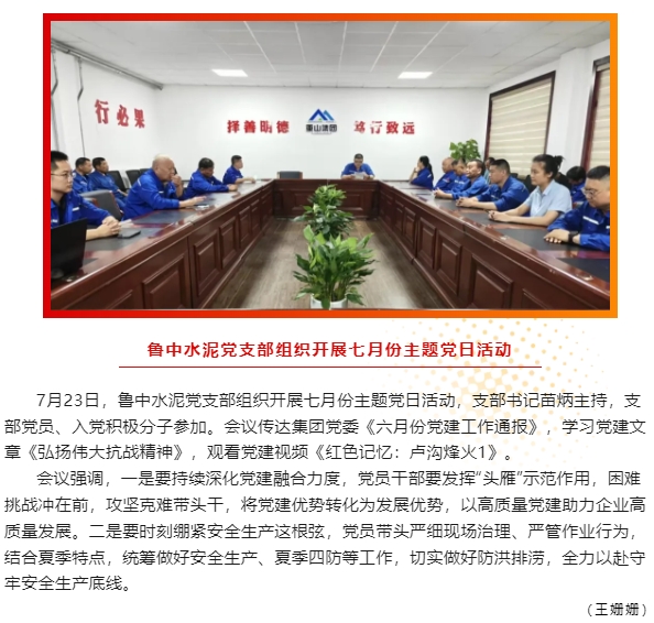 【黨建】魯中水泥黨支部組織開展七月份主題黨日活動、重山光電黨支部召開支委會