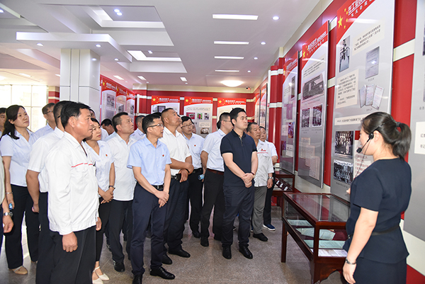 隨后,全體黨員干部代表集體乘車赴博山焦裕祿紀(jì)念館現(xiàn)場參觀,接受革命傳統(tǒng)教育,學(xué)習(xí)弘揚焦裕祿精神,進一步增強黨性修養(yǎng)和創(chuàng)業(yè)奮斗意識。在紀(jì)念館,黨員干部代表認真聽取講解,通過一張張圖片、一件件文物、一段段故事學(xué)習(xí)回顧焦裕祿同志光輝偉大的一生和感人致深的革命事跡,切身感受了焦裕祿同志親民愛民、艱苦奮斗、科學(xué)求實、迎難而上、無私奉獻的崇高精神。參觀結(jié)束后,全體黨員干部代表向焦裕祿同志塑像敬獻花籃并鞠躬致敬。全體黨員代表重溫入黨誓詞。參觀學(xué)習(xí)活動給黨員干部上了一堂生動難忘的黨課。本次主題教育活動,集團公司還為全體黨員發(fā)放了《苦難輝煌》學(xué)習(xí)書籍,要求每名黨員牢記黨的奮斗歷史和革命傳統(tǒng),堅定不移的跟黨走,以高度的責(zé)任感、使命感投入到本職工作中去,為黨的事業(yè)發(fā)展做出新的貢獻。